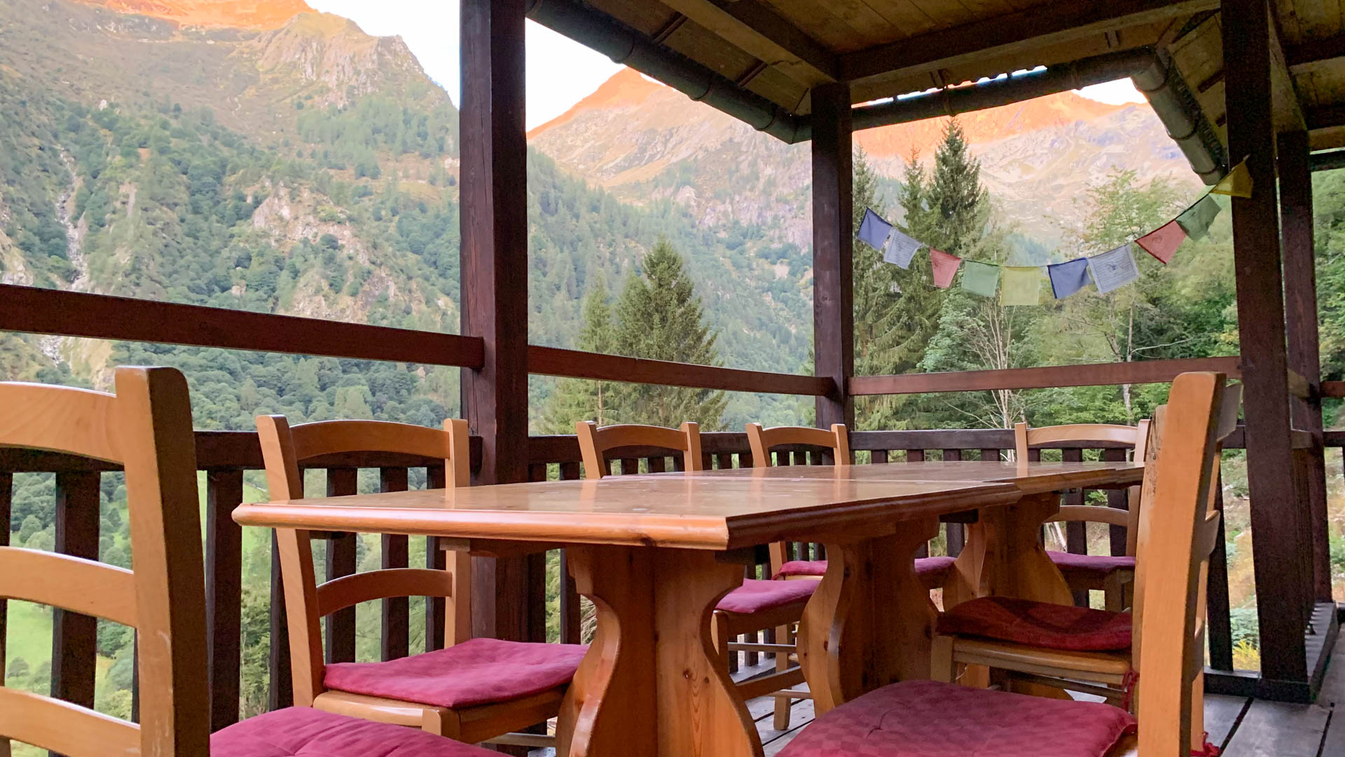 Von hier führt die zweite Etappe der GTA weiter in die Walliser Alpen. Die markanten Gipfel Monte Tagliaferro (2.964 m) und Corno Mud (2.802 m) prägen das Tal. Das Rifugio Brusà steht abgeschieden auf der Alpe Brusà – umgeben von steilen Bergflanken und den dichten Wäldern des Naturparks.